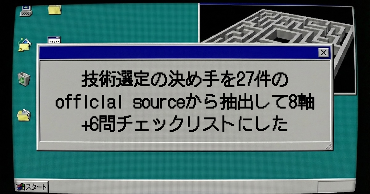 技術選定の決め手を27件のofficial sourceから抽出して8軸+6問チェックリストにした